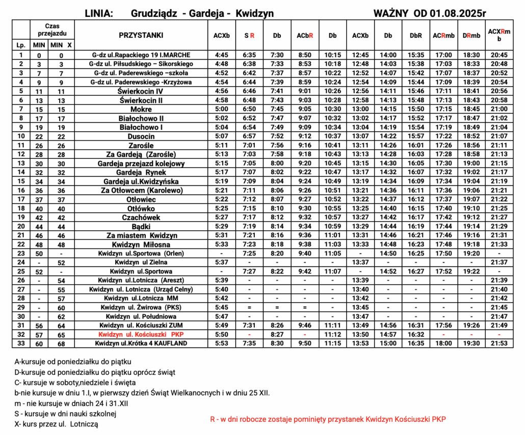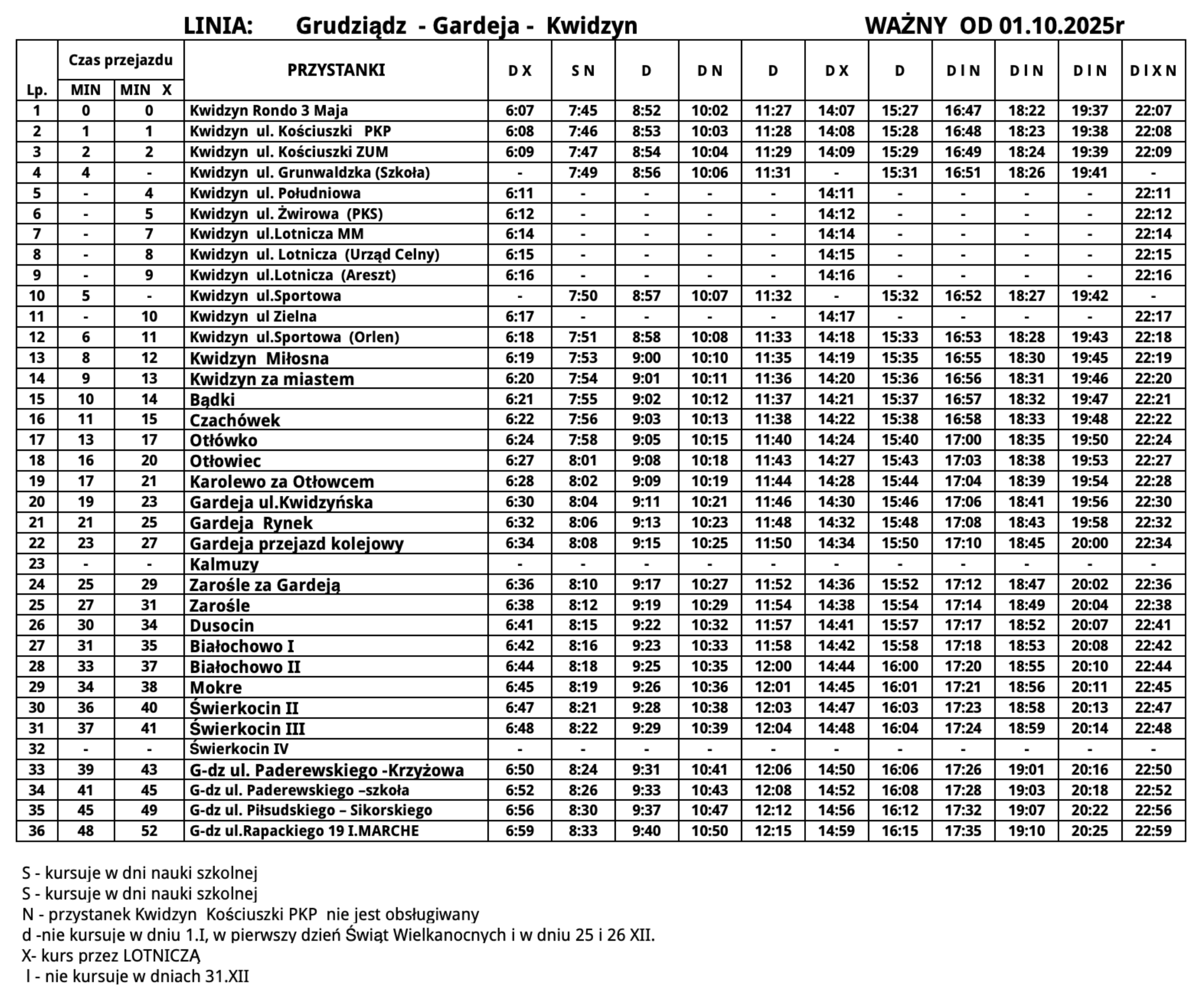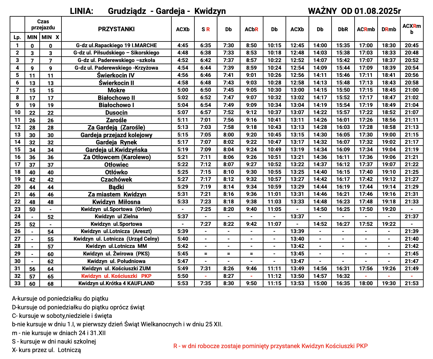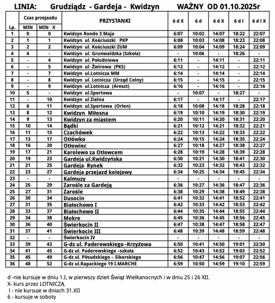 Rozkład jazdy Grudziądz – Gardeja – Kwidzyn