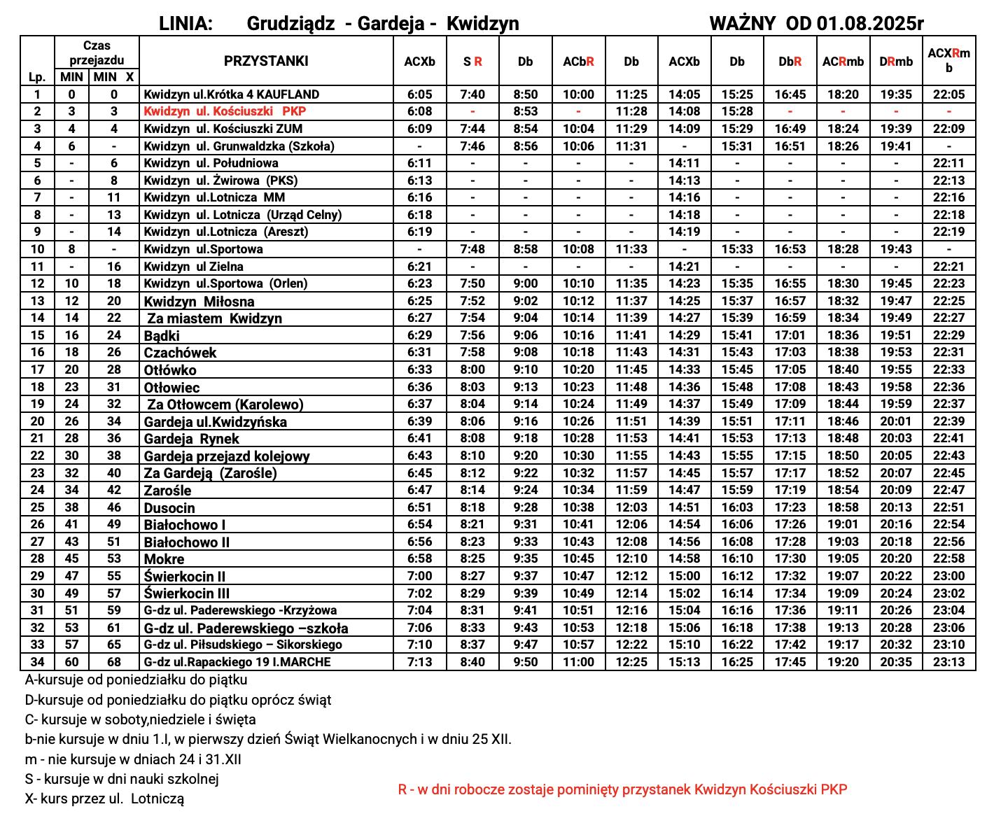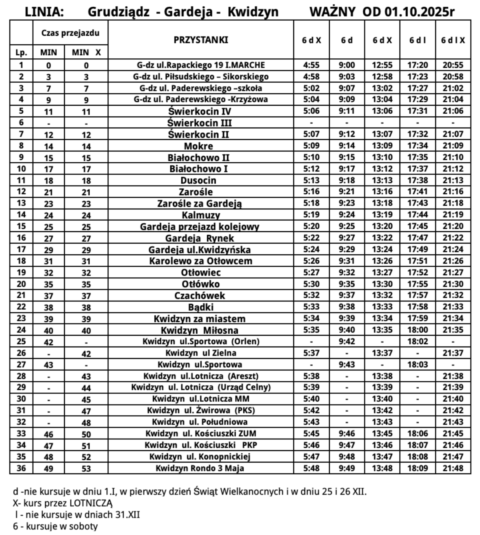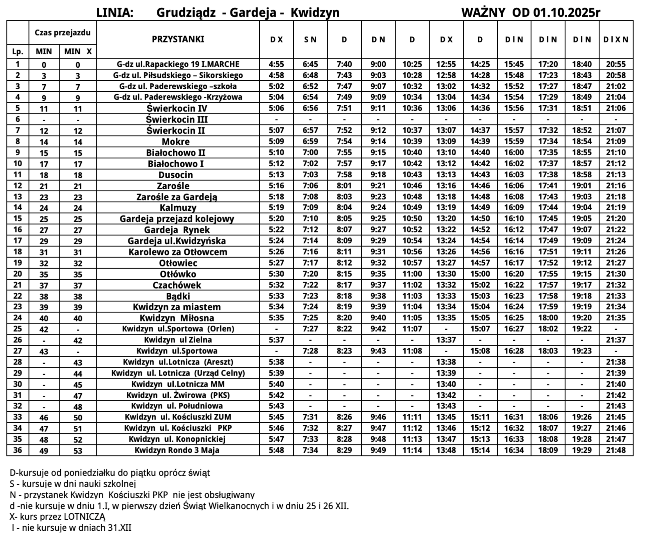 Rozkład jazdy Grudziądz – Gardeja – Kwidzyn